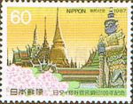STAMP 10 - commemorates the completion of the Ryogoku "Hall of National Accomplishment", the building shown at top of the stamp. This was Japan’s first permanent building for sumo wrestling tournaments, it was formally opened on 02.06.1909, rebuilt after destruction by a 29.11.1917 fire, survived the 1923 earthquake and the 1945 air raids, then was used for other purposes until torn down in 1983. - The lower part of the stamp shows a detail from a woodblock print titled "Hitachiyama” and “Umegatani", they were sumo grand champions. Hitachiyama Taniemon (1874-1922) and Umegatani Totaro II (1878-1927) both became grand champions in 1903, Hitachiyama as the 19th and Umegatani as the 20th grand champion.